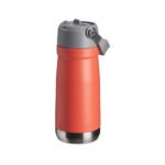 Garrafa térmica personalizada com parede dupla, produzida em Inox e com capacidade de 500 ml. Possui tampa com alça para transporte, bico flip e canudo interno. Dimensões (AxLxC): 21,5 x 8 x 25,4 cm.